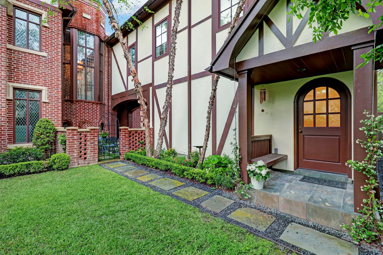 Masterful Tudor revival situated on double lot and cul-de-sac in West University. Custom designed with the finest craftsmanship, this showcase home combines style that evokes a timeless past, yet accommodates the enjoyment of today's contemporary lifestyle. Exquisite millwork and custom flooring, 3 gas fireplaces, formal and casual living areas, ideal for family gatherings or entertaining. First floor guest bedroom suite, family room, library and two foyers. Chef's kitchen with Viking double oven, 6 burner range, SubZero refrigerator, 2 dishwashers, warming drawer, rich wood cabinets and soapstone countertops. Climatized wine room, butlers pantry, breakfast room, and mudroom. Upstairs, magnificent Primary Suite with balcony and capacious Spa bath with steam shower system. Primary closet with floor to ceiling cabinets and library ladder. Two ensuite bedrooms, office, and fabulous Media/Playroom w/ensuite bath and kitchenette, could convert to large 5th bedroom. Truly a must see.